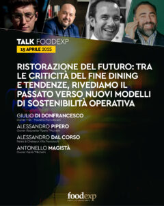 Il Tema. Ecco quindi che possiamo svelare il tema che animerà FoodExp 2025: se lo scorso anno era “DNA – Origini e contaminazioni della cucina italiana”, il tema di questa ottava edizione che sta prendendo forma scruterà l’orizzonte: “DNA Evolution”. «In passato ci siamo molto soffermati sul DNA della cucina italiana e di come questo sia cambiato nei decenni, di fronte all’influenza gastroculturale nata dal crescente confronto col mondo – spiega Giovanni Pizzolante – Questa volta, invece, abbiamo l’ambizione di andare ad analizzare le prospettive. Partendo da un assunto: certamente: se il nostro DNA è cambiato – poco o tanto che sia – come possiamo prevedere se e come cambierà anche nel prossimo futuro?». FoodExp 2025 “DNA Evolution” racconterà così la ricerca, la sperimentazione, la contaminazione, le nuove tendenze, le sfide della modernità, l’approccio verso sempre maggiori sostenibilità ambientale ed economica,