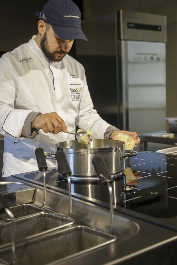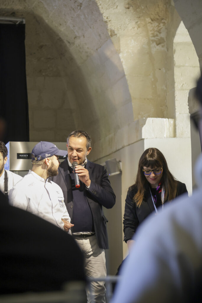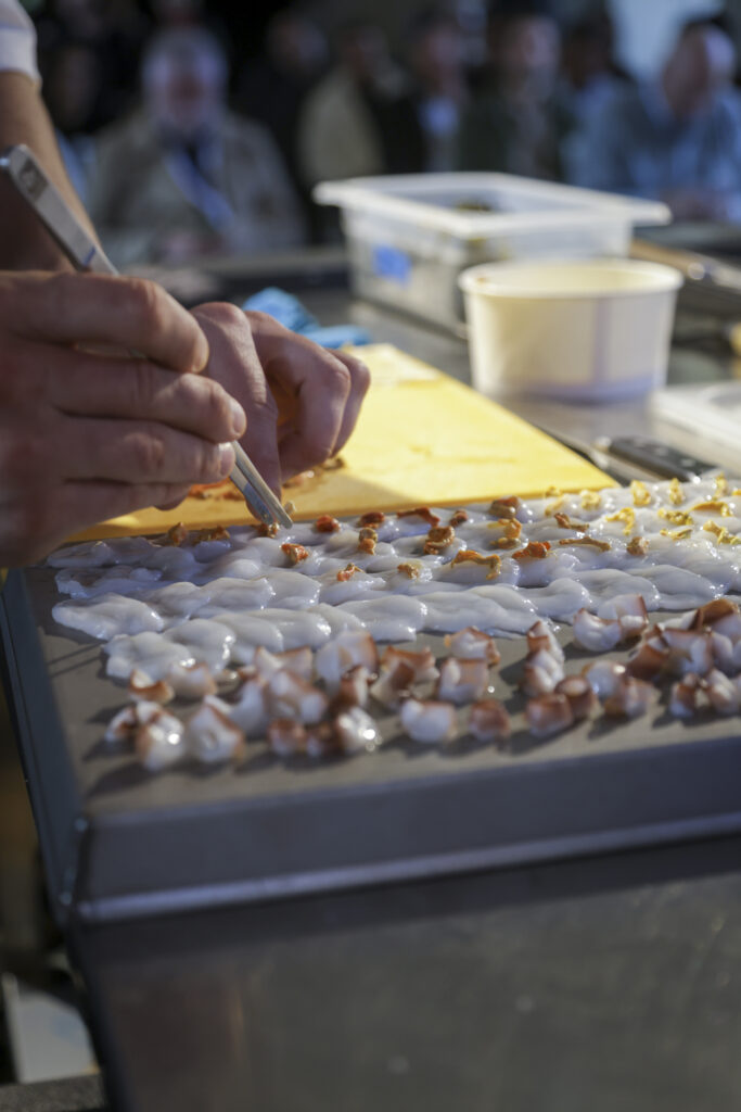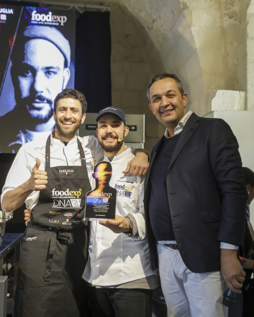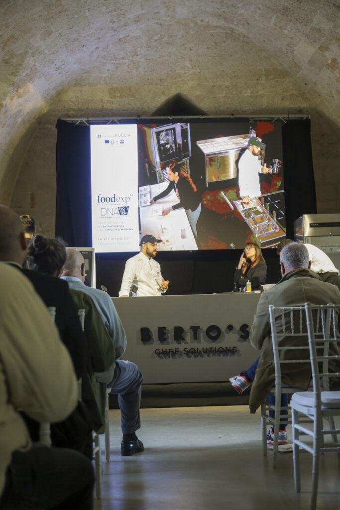 Da qui la ricerca di nuove strade, esplorando varietà dimenticate, con un invito a masticare il gusto del cambiamento. È proprio il gusto del mare che ha riproposto, per l’occasione, a FoodExp 2025, in una rana pescatrice cruda accompagnata da acqua di geranio e tabasco, quasi a ricordare una caramella dolce ma pungente; quindi, la masticabilità del polpo crudo con il limone di mare; infine, le alghe wakame a mo’ di spaghetto alle vongole perché «per me il mare ha il sapore dell’aglio, olio e prezzemolo».