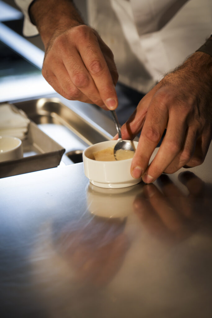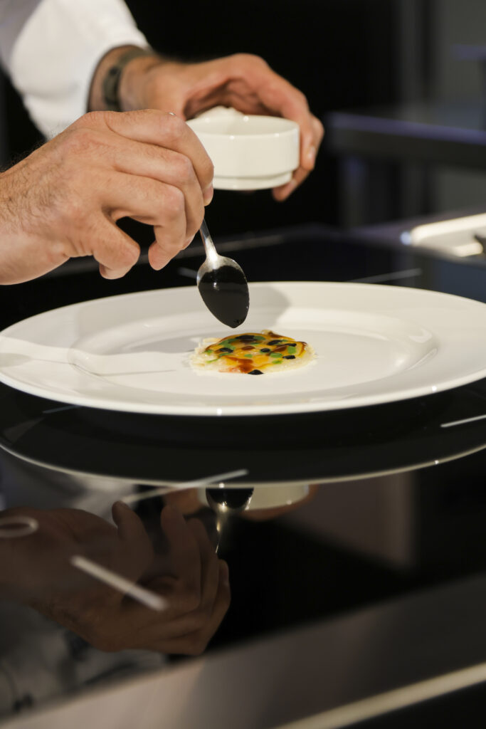 Per Taglienti le salse non sono un dettaglio ma il vero linguaggio universale degli chef. Ne fa il centro del suo menu Territorio e Visione, dove ogni piatto è costruito attorno a una o più salse.