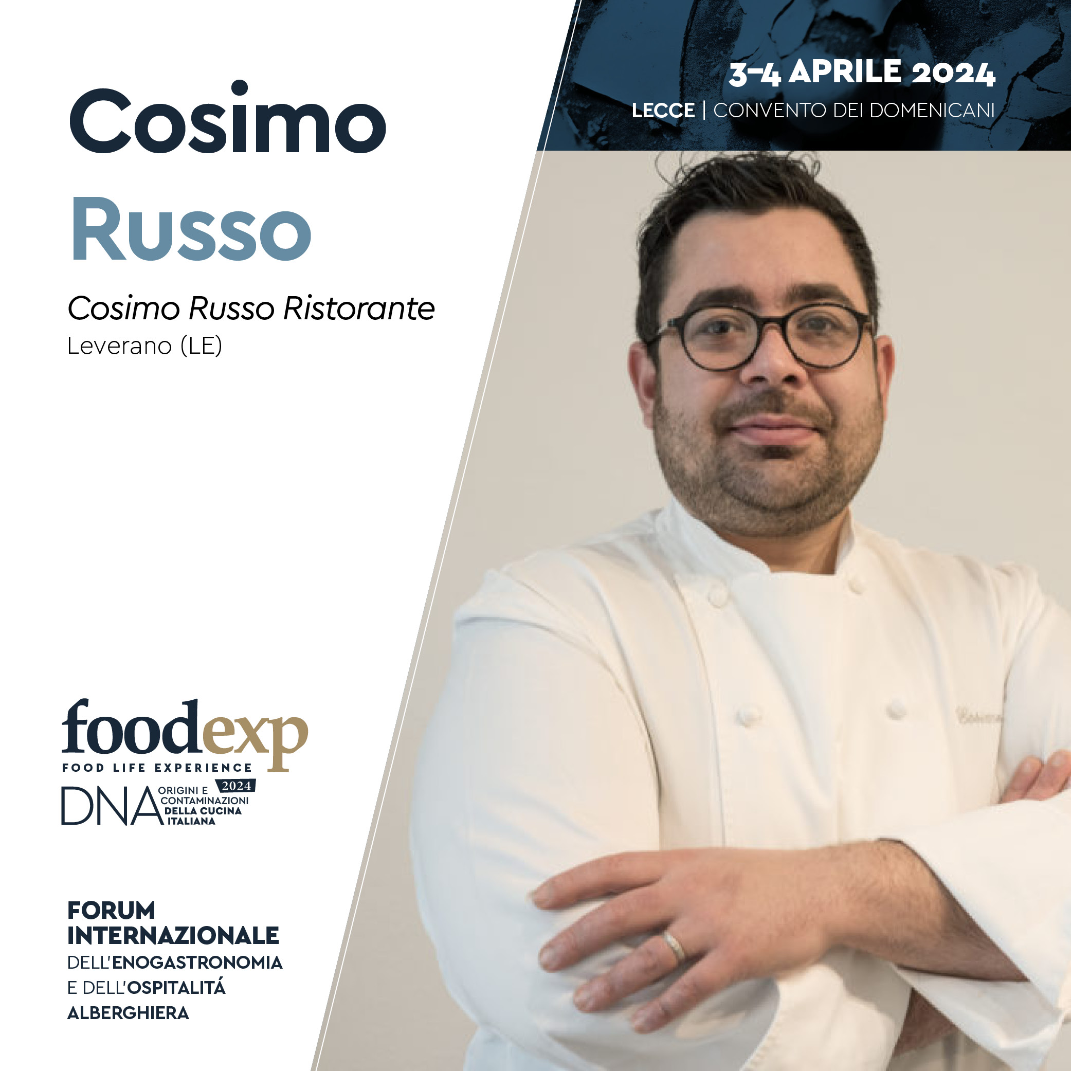 Cosimo Russo, classe 1984, originario di Massafra in provincia di Taranto. Cresce osservando il padre – appassionato trasformatore di carni- e la madre – interprete esemplare della cucina tradizionale pugliese-. Nasce così la passione, ne carpisce i segreti, le premure e le idee.
