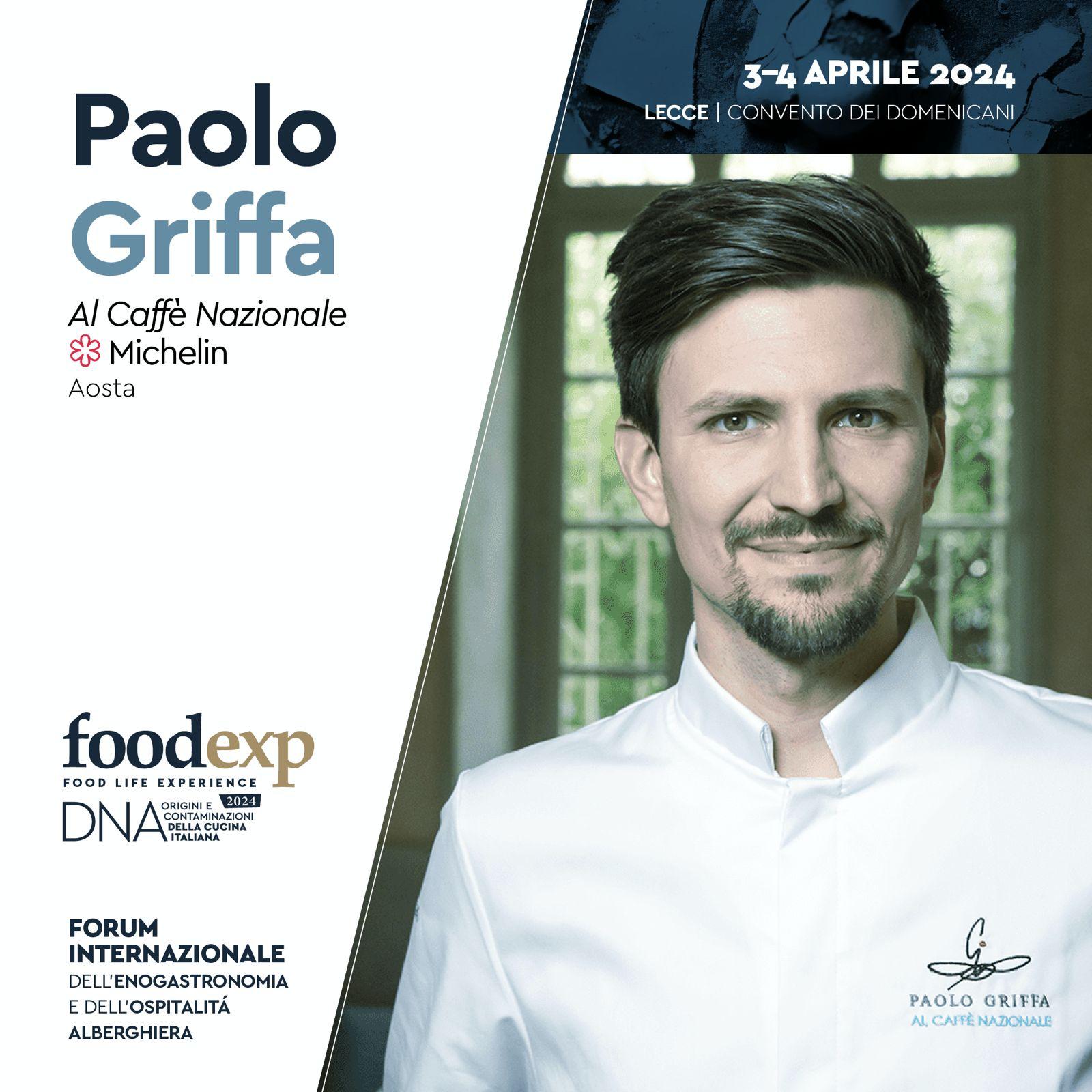 Paolo Griffa è talentuoso, consapevole della propria abilità, tecnicamente preparatissimo, ambizioso e assai competitivo, anche nei confronti di sé stesso e degli ostacoli che s’incontrano inevitabilmente in un tumultuoso ma evidente processo di crescita, com’è il suo. L’esordio da chef a tutto tondo, alla fine del 2017, al Grand Hotel Royal e Golf di Courmayeur, è lo snodo professionale in grado di dare una svolta alla sua ancor verde carriera, consentendole il definitivo salto di qualità. Lui ha scelto subito la sua strada, fin dai primi approcci nella cucina di casa come aiutante di nonna e mamma: studia poi all’Istituto alberghiero Giovanni Giolitti di Torino, diplomandosi con il massimo dei voti, cosa che gli dischiude la porta di grandi ristoranti di haute cuisine: Combal.Zero a Rivoli, lo Chateaubriand a Parigi, Studio a Copenhagen. Dal 2013 a fine 2015, poco più che maggiorenne, è già sous chef al Piccolo Lago, due stelle Michelin sul lago di Mergozzo. Nel 2014 ha vinto per l’Italia la selezione nazionale per il S.Pellegrino Young Chef 2015. L’anno successivo è a Chaudes-Aigues (Francia), fa parte della brigata di Serge Vieira, due stelle Michelin: entra persino nel team Bocuse d’Or Australia per la finale 2017. Anno in cui, come detto, a novembre viene chiamato a Courmayeur. A dicembre 2019 arriva la prima stella.